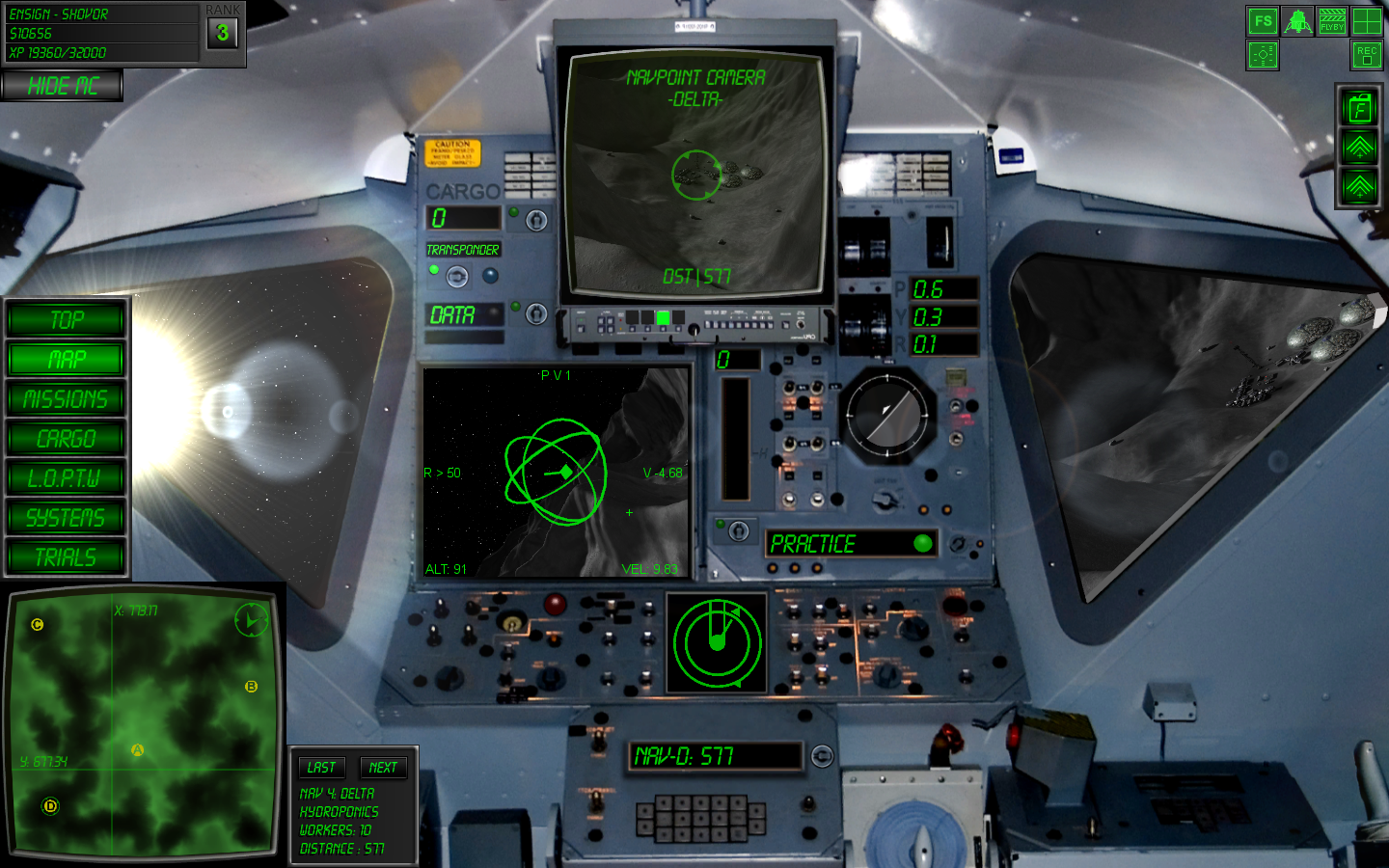 - Earn money and experience from transport, survey and lost cargo recovery missions